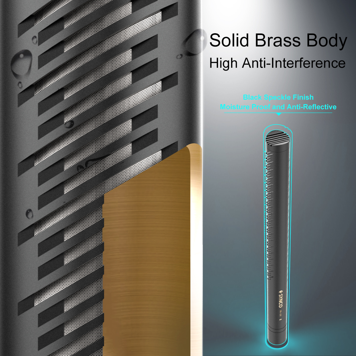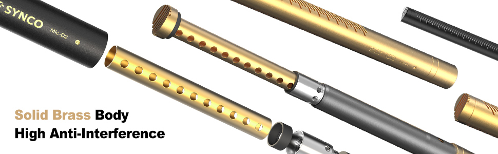 SYNCO Mic-D2, a professional hypercardioid condenser broadcast microphone, is an excellent choice for video & audio recording. It carries a solid brass construction, extremely low self-noise, ultra-flat frequency response, and a gold plated XLR connector. It can be mounted on boom poles and tripods, and can be connected to camcorders easily with a XLRM-XLRF cable.