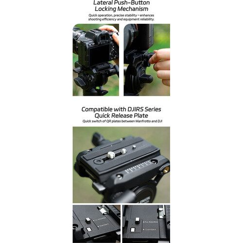 • Set Screw to Prevent Deflection: 39mm carbon fiber tube. Anti-deflection screw on the top quick-release plate to enhance the stability of the equipment installed. *Max payload with a gimbal: 5kg