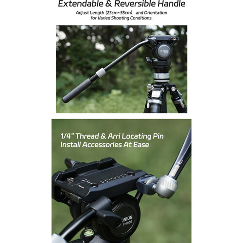 The Pineta Pro Carbon Fiber Monopod with FH60S Fluid Head from YC Onion is a monopod system with a single locking lever that allows all three leg segments and the tripod foot base to be extended, positioned, and locked in one action. The monopod extends to a maximum height of 67.9″, and the FH60S head has a payload of 13.2 lb.